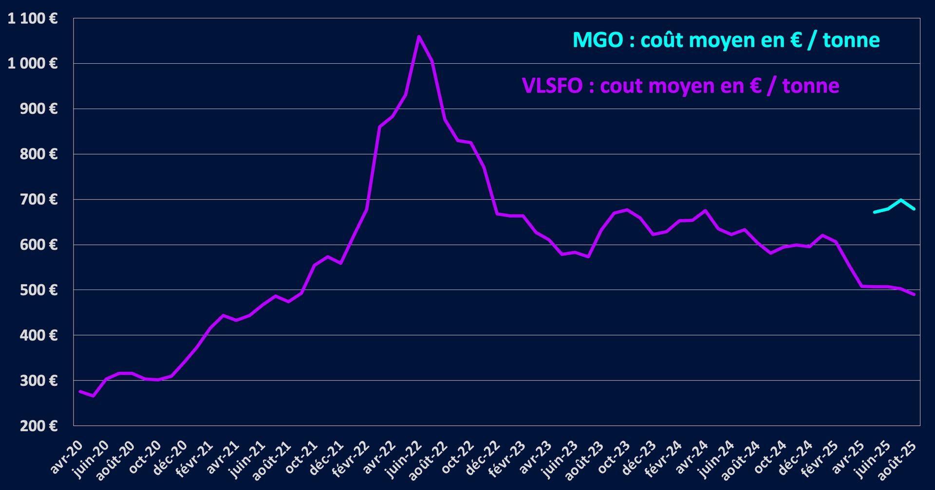 Following the COVID crisis in 2020, there is a global desire for decarbonization and the cost of a ton of crude oil continues to increase. The cost of VLSFO (very low sulfur fuel oil) doubled between June 2020 and today; it is currently on average at more than 650 € per ton.